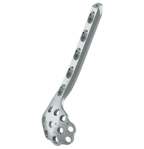 注:選用HC5.0,HA4.5金屬接骨螺釘,適用于股骨髁粉碎性骨折/骨折遠端骨折固定。(圖示為5孔右)